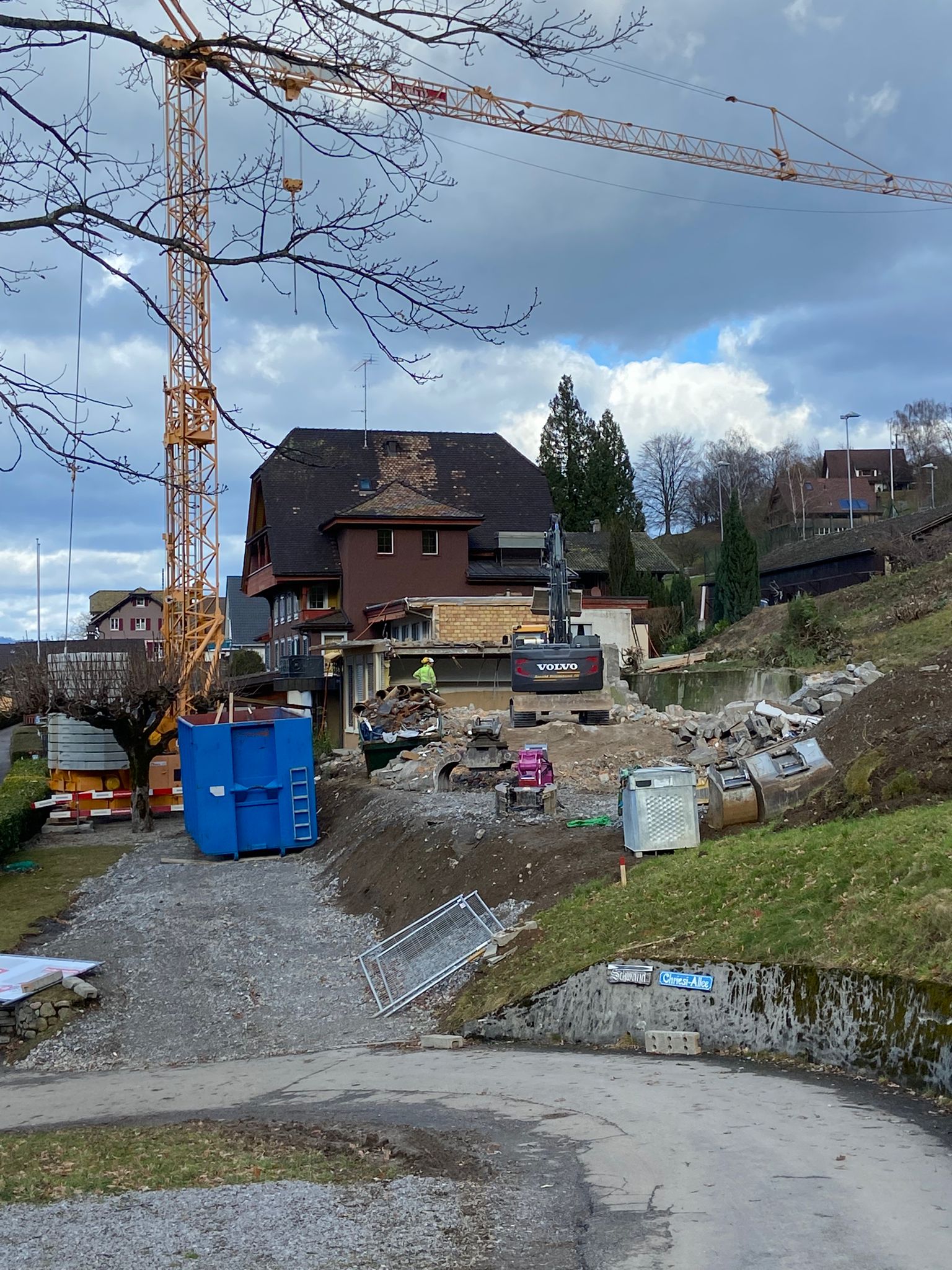 Wir nutzen das tolle Frühlingswetter und kommen mit den Abbrucharbeiten des alten Nebengebäudes in Kehrsiten gut voran.